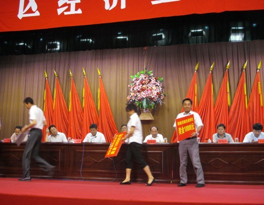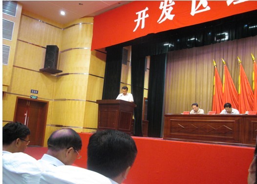 2013年7月27日上午8:30,開發(fā)區(qū)管委會組織區(qū)屬黨政負責(zé)人、區(qū)(鎮(zhèn))機關(guān)中層以上干部,規(guī)模以上企業(yè)主要負責(zé)人、國稅局、地稅局、工商局駐區(qū)機構(gòu)負責(zé)人;供電公司、商業(yè)銀行、各村主要負責(zé)人在區(qū)委黨校大禮堂召開經(jīng)濟工作會議。