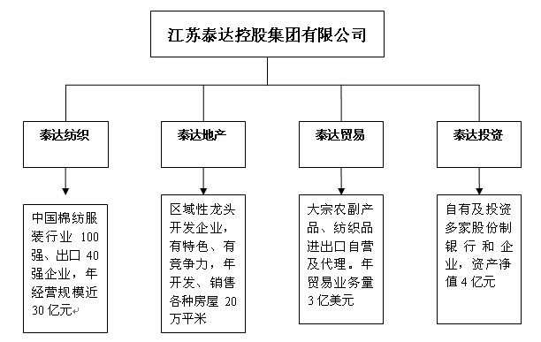 江蘇泰達控股集團有限公司是集紡織、房地產、進出口貿易、股權投資等多個行業為一體的私營綜合企業集團。